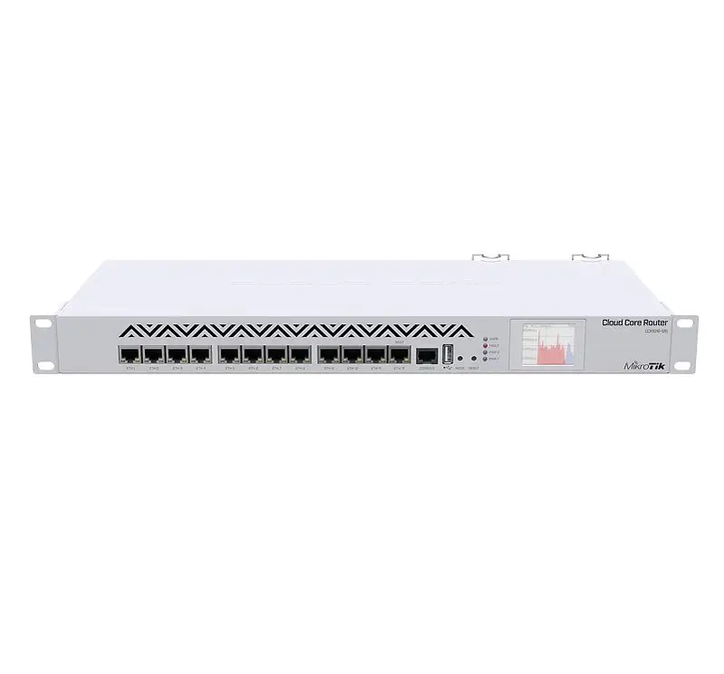 Le CCR1016-12G est un routeur de qualité industrielle avec un processeur de pointe à 16 cœurs. Si vous avez besoin de plusieurs millions de paquets par seconde, le routeur Cloud Core est votre meilleur choix. L’unité est équipée de 12 ports Gigabit Ethernet et d’un écran LCD couleur tactile.